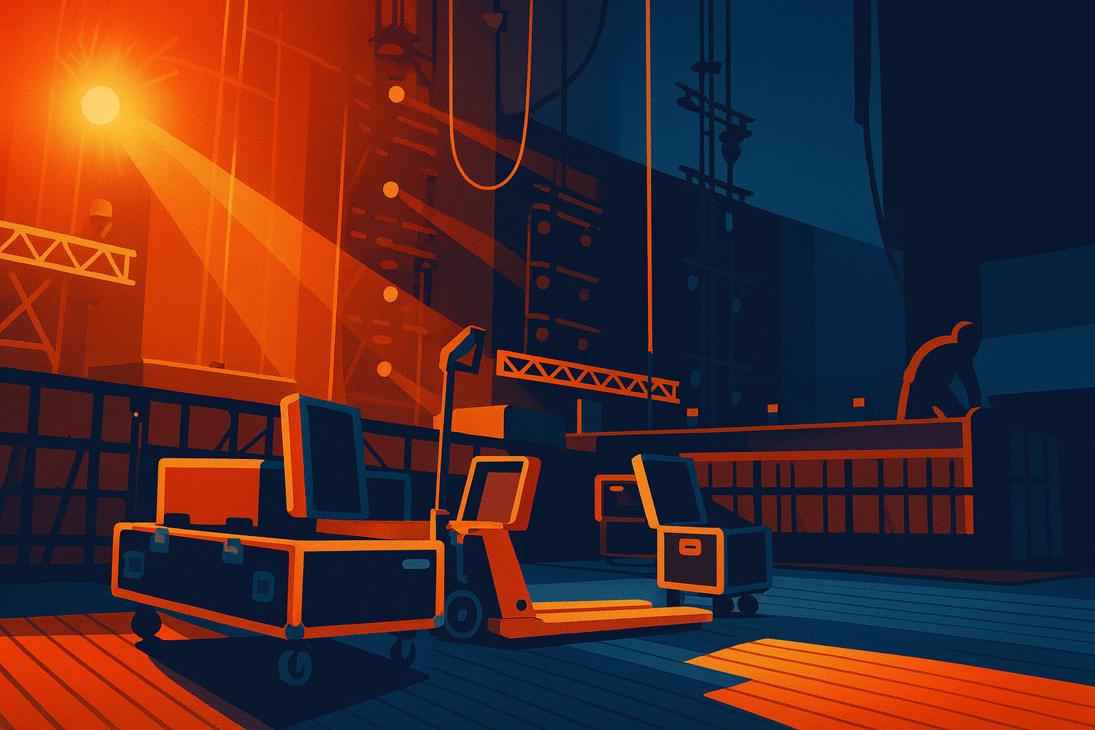 Technicien d’installation audiovisuelle integrant une équipe de production lors des périodes d’installations et calibration du materiel.